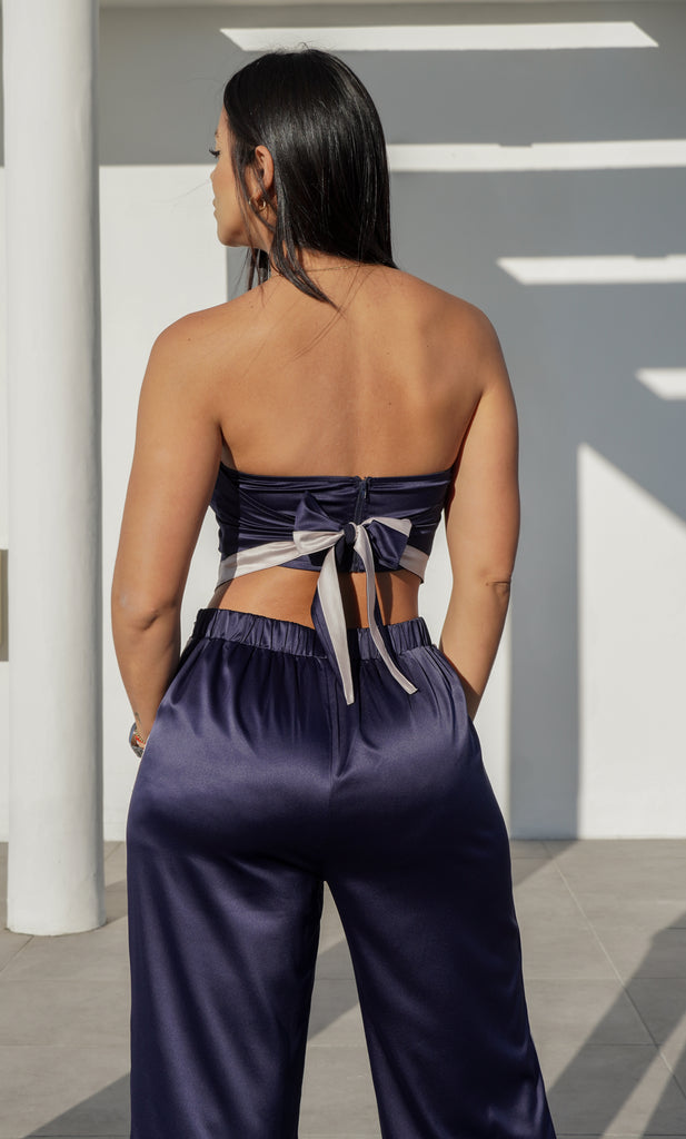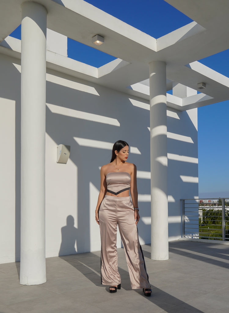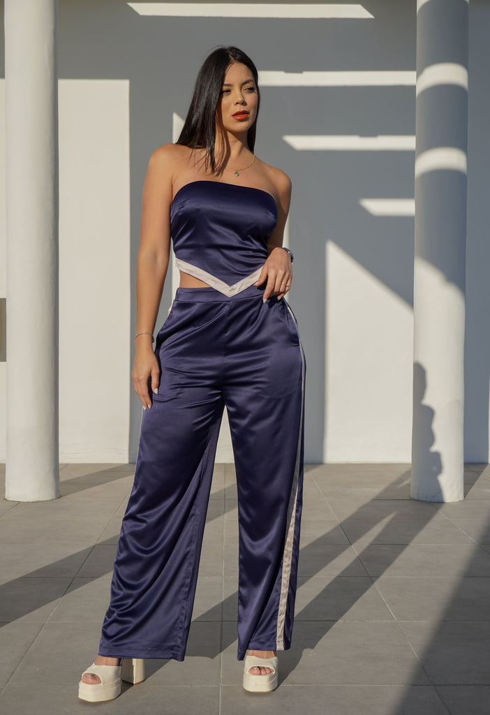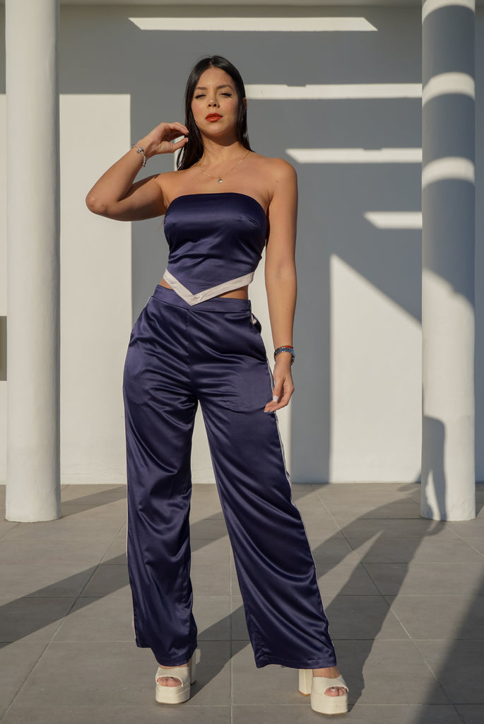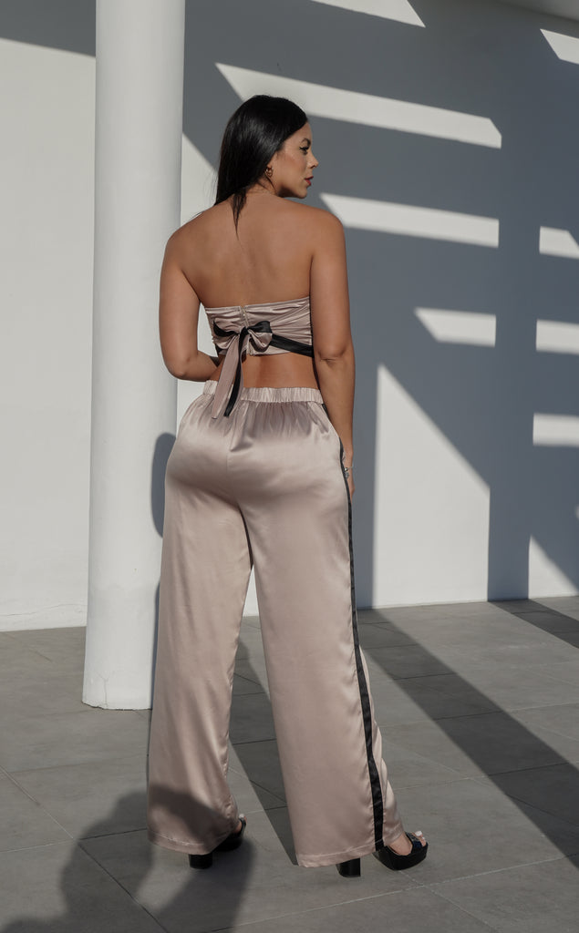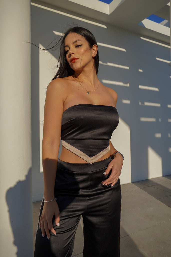 SET SATIN TOP PAÑOLETA CON AMARRE DE AJUSTE Y CIERRE